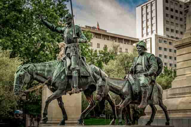1) 소설 돈키호테: 소설 속의 돈키호테는 책을 많이 읽었지만, 기사 작위의 이상을 진심으로 믿는 망상에 빠진 한 인간으로 묘사되고 있습니다. 그의 행동은 비록 현실과 괴리되어 있고 잘못되어 있음에도 불구하고 그만의 숭고한 의무감과 명예에 대한 열망에 의해 추진되고 있습니다.